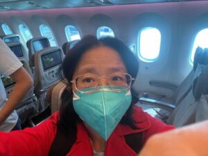 Chu Wenhong poses for a selfie before her flight to China ahead of the Chinese Lunar New Year takes off, her first time going home since the coronavirus disease (COVID-19) pandemic, at Changi airport in Singapore January 12, 2023. Chu Wenhong/Handout via REUTERS ATTENTION EDITORS – THIS IMAGE WAS PROVIDED BY A THIRD PARTY.