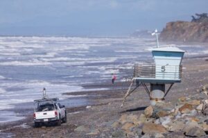 Scripps Institution of Oceanography at the University of California San Diego use a research vehicle with lasers to track beach erosion along San Diego’s coast following major winter storms in coastline in San Diego, California, U.S., January 17, 2023. REUTERS/Mike Blake