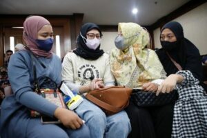 Mothers of acute kidney injury (AKI) victims attend a preliminary hearing for a class-action lawsuit filed against the Indonesian government and drug companies for allowing the sale of tainted cough syrup at the court in Jakarta, Indonesia, January 17, 2023. REUTERS/Ajeng Dinar Ulfiana