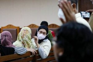 Safitri Puspa, 42, the mother of an acute kidney injury (AKI) victim, attends a preliminary hearing for a class-action lawsuit filed against the Indonesian government and drug companies for allowing the sale of tainted cough syrup at the court in Jakarta, Indonesia, January 17, 2023. REUTERS/Ajeng Dinar Ulfiana