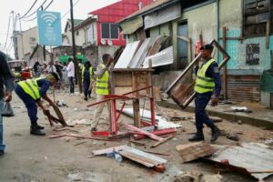 Kinshasa sanitary police dismantle pirate market shops as part of efforts to clean up the Congolese capital ahead of Pope Francis’ visit, scheduled for late January in Kinshasa, Democratic Republic of Congo, January 13, 2023. REUTERS/Justin Makangara