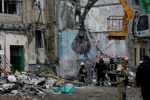 ARCHIV: Rettungskräfte arbeiten in Dnipro an der Stelle, an der ein Wohnblock durch einen russischen Raketenangriff schwer beschädigt wurde, mitten in Russlands Angriff auf die Ukraine. Dnipro, Ukraine, 16. Januar 2023. REUTERS/Clodagh Kilcoyne/File Photo