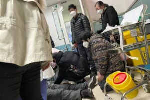 FILE PHOTO: Relatives react next to a man receiving chest compressions through a CPR device while lying on the floor in the emergency department of a hospital, amid the coronavirus disease (COVID-19) outbreak in Shanghai, China, January 5, 2023. REUTERS/Staff