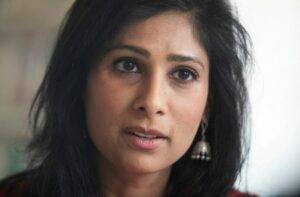 FILE PHOTO: Economic Counsellor and Director of the Research Department at the International Monetary Fund (IMF) Gita Gopinath speaks during an interview with Reuters in the Alpine resort of Davos, Switzerland May 23, 2022. REUTERS/Arnd Wiegmann/File Photo
