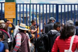 Passengers wait outside the airport a day after thousands of demonstrators marched in Lima and in other parts of the country, angered by a mounting death toll since unrest erupted last month and calling for sweeping change, in Cuzco, Peru January 20, 2023. REUTERS/Paul Gambin