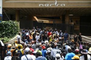Members of the public and several civil rights organisations including #NotInMyName gather outside the offices of South Africa’s energy regulator (Nersa), during a protest against electricity cuts and the 18.6% tariff hike granted to Eskom by NERSA, in Pretoria, South Africa, January 20, 2023. REUTERS/Alet Pretorius/File Photo