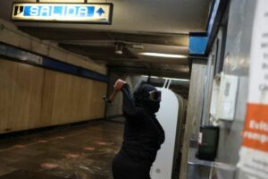 FILE PHOTO: A demonstrator vandalize the Bellas Artes subway station during a protest against the deployment of the National Guard to stations and other facilities of the Metro system after a series of incidents in Mexico City, Mexico January 13, 2023. REUTERS/Gustavo Graf