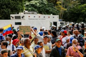 A demonstrator holds a sign that reads “Indexed salaries and pensions now”, during a march by teachers, health workers, workers’ unions members and members of the opposition to demand better salaries, as the government of President Nicolas Maduro faces renewed challenges in its attempt to fight inflation, in Caracas, Venezuela January 23, 2023. REUTERS/Leonardo Fernandez Viloria