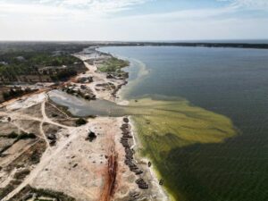Pirogues lie on the bank of the Pink Lake (Lac Rose), officially known as Lake Retba after extreme floods washed away salt mounts and contaminated the lake and turned its famous waters from Pink to green, in Niaga, near Dakar, Senegal, January 17, 2023. REUTERS/ Zohra Bensemra