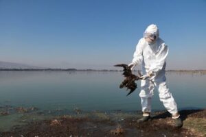 Imagen de archivo. Un técnico del Servicio Nacional de Sanidad, Inocuidad y Calidad Agroalimentaria (Senasica) sostiene un ave muerta mientras el gobierno mexicano investiga la muerte de cientos de aves en la costa del Pacífico mexicano con una ubicación no revelada. 10 de junio de 2023. REUTERS/Gobierno de México/IMAGEN SUMINISTRADA POR UN TERCERO/NI REVENTAS NI ARCHIVOS