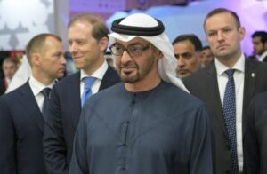 President of the United Arab Emirates Sheikh Mohammed bin Zayed Al Nahyan, accompanied by Russian President Vladimir Putin, visits a stand at the St. Petersburg International Economic Forum (SPIEF) in Saint Petersburg, Russia, June 16, 2023. Sputnik/Alexey Nikolsky/Host photo agency via REUTERS
