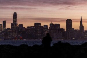 FILE PHOTO: A view of San Francisco skyline as the city struggles to return to its pre-pandemic downtown occupancy rate, falling behind many other major cities around the country, according to local officials, in California, U.S., February 13, 2023. REUTERS/Carlos Barria/File Photo