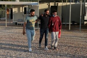 Syrian survivor Mohammad, 18, who was rescued with other refugees and migrants at open sea off Greece after their boat capsized, reunites with his brother Fadi, inside a reception and identification camp in Malakasa, Greece, June 18, 2023. REUTERS/Stelios Misinas