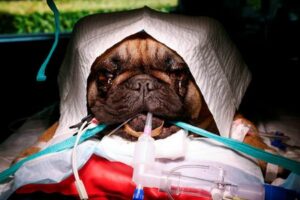 French bulldog Abbey undergoes surgery for breathing problems while the Dutch government proposes a law banning the possession of cats and dogs with characteristics such as too-short snouts which animal rights activists say are cruel in Utrecht, Netherlands June 20, 2023. REUTERS/Piroschka van de Wouw