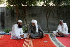 Dilawar Khan (C), father of Muhammad Ali, 21, who along with others died when a migrant boat shipwrecked off the coast near Benghazi in Libya, sits with people who came to attend a prayer after his son’s funeral, at his family home in Bhojpur town in Gujrat district of Punjab province, Pakistan March 7, 2023. REUTERS/Akhtar Soomro
