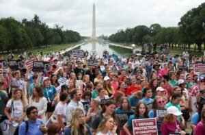 Anti-abortion demonstrators listen as Republican presidential candidate and former U.S. Vice President Mike Pence (not pictured) addresses the “National Celebrate Life Day Rally” commemorating the first anniversary of the U.S. Supreme Court ruling in the Dobbs v Women’s Health Organization case, overturning the landmark Roe v Wade abortion decision, in Washington, U.S., June 24, 2023. REUTERS/Evelyn Hockstein