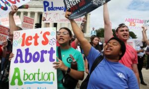 Anti-abortion demonstrators and counter protesters listen as Republican presidential candidate and former U.S. Vice President Mike Pence (not pictured) addresses the “National Celebrate Life Day Rally” commemorating the first anniversary of the U.S. Supreme Court ruling in the Dobbs v Women’s Health Organization case, overturning the landmark Roe v Wade abortion decision, in Washington, U.S., June 24, 2023. REUTERS/Evelyn Hockstein
