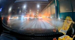 A view shows cars crashed on a road due to snow and freezing rain in this screen grab taken from a video recorded from inside of a car, in Yanta district, Xi’an city, Shaanxi, China, released on February 20, 2024. Video obtained by Reuters/via REUTERS