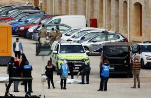 Police forensic officers gather around the body of a drowned migrant after a boat carrying 30 migrants capsized during a rescue operation off Malta, at the Armed Forces of Malta maritime squadron base at Haywharf in Valletta’s Marsamxett Harbour, Malta February 23, 2024. REUTERS/Darrin Zammit Lupi
