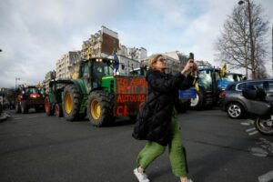 Agricultores franceses de Coordination Rural (CR) utilizan sus tractores durante una operación de marcha lenta mientras protestan antes de la inauguración de la feria agrícola de París, en París, Francia. 23 de febrero de 2024. REUTERS/Benoit Tessier
