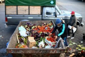 FILE PHOTO: A man collects food from a container where discarded fruits and vegetables are deposited at the Mercado Central, the city’s largest wholesale central market, which receives produce from the entire country, as Argentines face a daily race for deals as inflation soars above 100%, on the outskirts of Buenos Aires, Argentina September 12, 2023. REUTERS/Matias Baglietto/File Photo