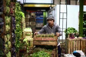 FILE PHOTO: A vendor carries a box of vegetables at the Mercado Central, the city’s largest wholesale central market, which receives produce from the entire country, as Argentines face a daily race for deals as inflation soars above 100%, on the outskirts of Buenos Aires, Argentina September 12, 2023. REUTERS/Matias Baglietto/File Photo