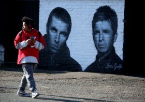 FOTO DE ARCHIVO. Un hombre pasa junto a un mural de los miembros de la banda Oasis, Liam y Noel Gallagher, realizado por el artista Snow Graffiti en la pared del pub Coach and Horses en Whitefield, cerca de Manchester, Inglaterra, 31 de agosto de 2024.REUTERS/Phil Noble
