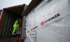 ARCHIV: Ein Mitarbeiter von DCP (Dettmer Container Packing) prüft die Ladung eines Containers während eines Presserundgangs bei der Logistikeinheit der Deutschen Bahn, Schenker, am Hafen in Hamburg, Deutschland, 8. August 2024. REUTERS/Cathrin Müller