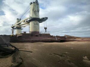 Una vista muestra un buque de carga civil dañado, que transportaba grano de trigo a Egipto, que fue alcanzado por un ataque con misiles rusos después de salir de la frontera marítima ucraniana en el Mar Negro, en medio del ataque de Rusia a Ucrania, 12 de septiembre de 2024. Servicio de Prensa Presidencial de Ucrania/Distribuida vía REUTERS