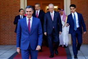 Spain’s Prime Minister Pedro Sanchez walks, in front of Palestinian Prime Minister Mohammad Mustafa, Saudi Arabia’s Foreign Minister Prince Faisal bin Farhan Al-Saud and Spain’s Foreign Minister Jose Manuel Albares, on the day of a meeting with at Moncloa Palace in Madrid, Spain, September 13, 2024. REUTERS/Susana Vera