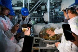FILE PHOTO: A view of the base of the soon-to-be-completed and sealed central detector at the Jiangmen Underground Neutrino Observatory (JUNO), during an organised media tour by the Chinese foreign ministry and the Chinese Academy of Sciences (CAS), in Kaiping, Guangdong province, China October 11, 2024. REUTERS/Ryan Woo/File Photo
