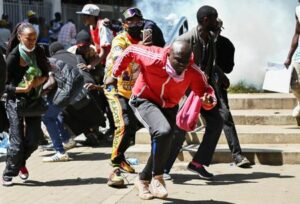 Protesters demonstrating against what they say is a wave of unexplained abductions of government critics, react after riot police lobbed teargas canisters to disperse them, along the Aga Khan walk in downtown Nairobi, Kenya December 30, 2024. REUTERS/John Muchucha