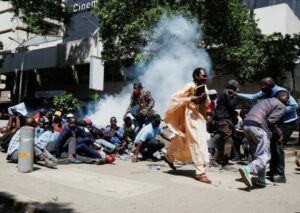 Riot police lob tear gas canisters as they attempt to disperse protesters demonstrating against what they say is a wave of unexplained abductions of government critics, along the Aga Khan walk in downtown Nairobi, Kenya December 30, 2024. REUTERS/Monicah Mwangi