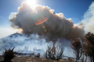 FOTO DE ARCHIVO. El humo se ve en el Bosque Nacional de Angeles cerca del monte Wilson mientras los incendios forestales ganan terreno en la zona de Los Ăngeles, en el incendio de Eaton en Altadena, California, EEUU. 9 de enero 2025. REUTERS/Ringo Chiu