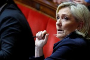 FOTO DE ARCHIVO: La líder ultraderechista y diputada francesa Marine Le Pen, presidenta del grupo parlamentario del partido ultraderechista francés Agrupación Nacional (Rassemblement National – RN), asiste a la sesión de preguntas al Gobierno en la Asamblea Nacional en París, Francia, 28 de enero de 2025. REUTERS/Gonzalo Fuentes/File Photo