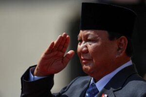 FILE PHOTO: Indonesian President Prabowo Subianto salutes during a welcoming ceremony at the government palace, on the sidelines of the Asia-Pacific Economic Cooperation (APEC) summit, in Lima, Peru November 14, 2024. REUTERS/Agustin Marcarian/File Photo