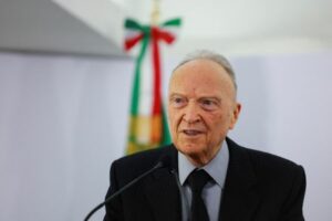 El Procurador General de la República, Alejandro Gertz Manero, habla durante una conferencia de prensa con el Secretario de Seguridad y Protección Ciudadana de México, Omar García Harfuch, sobre la extradición de 29 miembros de cárteles de la droga a Estados Unidos, en la sede de la Secretaría de Seguridad y Protección Ciudadana en Ciudad de México, México, el 28 de febrero de 2025. REUTERS/Raquel Cunha