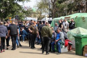 Pro-government supporters gather outside the Serbian Presidency building before a protest, which has become a national movement for change following the deadly November 2024 Novi Sad railway station roof collapse, in Belgrade, Serbia, March 15, 2025. REUTERS/Mitar Mitrovic