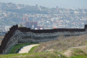 FOTO DE ARCHIVO. El muro fronterizo que separa México y Estados Unidos, reforzado con alambre de concertina colocado por las Fuerzas Armadas de EE.UU., con Tijuana, México, en el fondo, en San Diego, California, EE.UU. 21 de marzo de 2025.? REUTERS/Mike Blake
