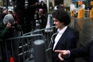 Former FTX Chief Executive Sam Bankman-Fried, who faces fraud charges over the collapse of the bankrupt cryptocurrency exchange, leaves on the day of a hearing at Manhattan federal court in New York City, U.S. January 3, 2023. REUTERS/Eduardo Munoz