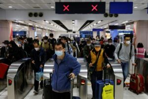 Travellers arrive at Hong Kong’s Lok Ma Chau border checkpoint on the first day China reopens the border amid the coronavirus disease (COVID-19) pandemic in Hong Kong, China, January 8, 2023. REUTERS/Tyrone Siu