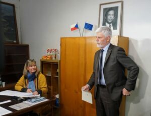 Czech presidential candidate and former Chairman of the NATO Military Committee and Czech Army General Petr Pavel casts his ballot during the country’s direct presidential election in the village of Cernoucek, Czech Republic, January 13, 2023. REUTERS/Jiri Skacel