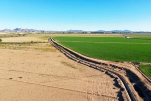 FILE PHOTO: A view of a fallow field and a dry irrigation canal next to a cultivated field in Palo Verde, California, U.S., September 19, 2022. REUTERS/Aude Guerrucci
