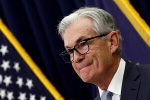 FILE PHOTO: Federal Reserve Board Chairman Jerome Powell looks on during a news conference following the announcement that the Federal Reserve raised interest rates by half a percentage point, at the Federal Reserve Building in Washington, U.S., December 14, 2022. REUTERS/Evelyn Hockstein
