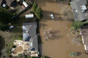 Aerial view of a flooded street after winter storms brought high winds and heavy rain in Atwater, California, U.S. January 12, 2023. REUTERS/Laure Andrillon