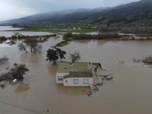 A home on agricultural land is seen amid flooding from the Salinas River in Salinas, California, U.S., January 13, 2023. REUTERS/David Swanson