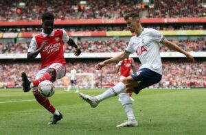 FILE PHOTO: Soccer Football – Premier League – Arsenal v Tottenham Hotspur – Emirates Stadium, London, Britain – October 1, 2022 Tottenham Hotspur’s Ivan Perisic in action with Arsenal’s Bukayo Saka Action Images via Reuters/Matthew Childs