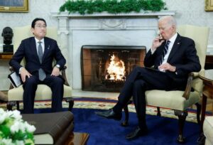 U.S. President Joe Biden holds a bilateral meeting with Japan’s Prime Minister Fumio Kishida in the Oval Office at the White House in Washington, U.S., January 13, 2023. REUTERS/Jonathan Ernst