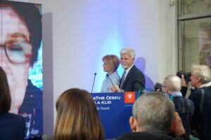 Czech presidential candidate Petr Pavel and his wife Eva Pavlova react on the day of the first round of the presidential election, in Prague, Czech Republic, January 14, 2023. REUTERS/Jiri Skacel