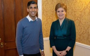 FILE PHOTO: British Prime Minister Rishi Sunak and Scotland’s First Minister Nicola Sturgeon hold a meeting in Inverness, Scotland, Britain January 12, 2023. Simon Walker/ No 10 Downing Street/Handout via REUTERS